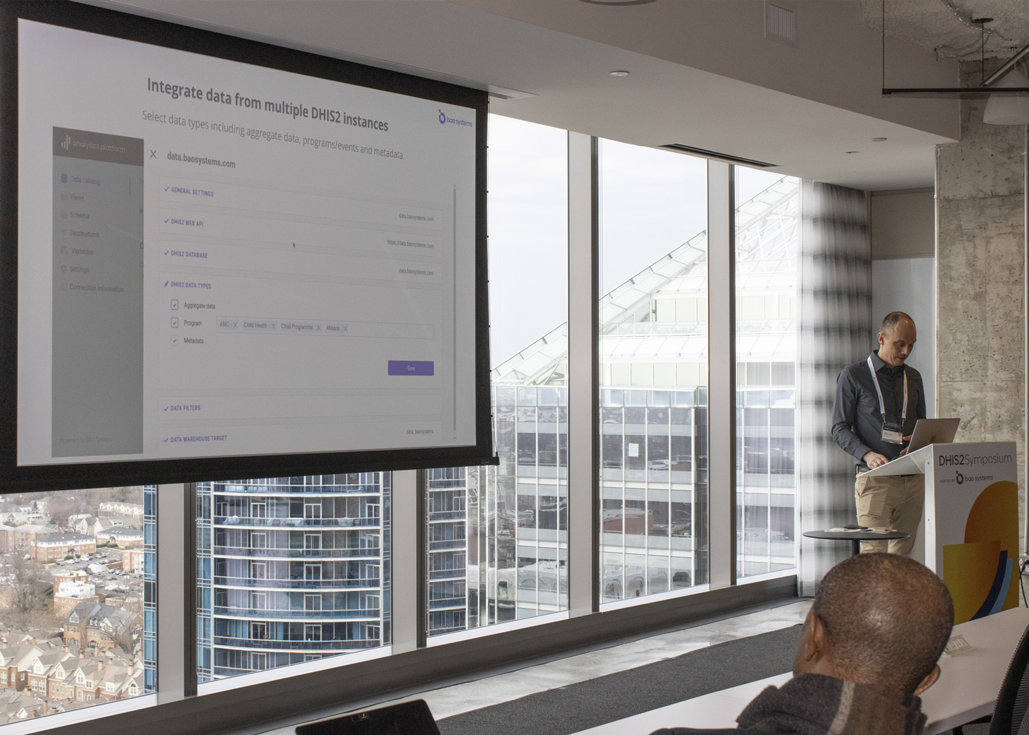 Presentation of the BAO Analytics Platform at the DHIS2 Symposium 2024 in Washington, DC (left) and at the Impact First Summit 2024 in Lisbon (right).